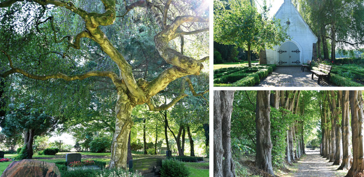 Das gartenartig aufgebaute Gräberfeld, vorrangig mit Hecken und Sträuchern