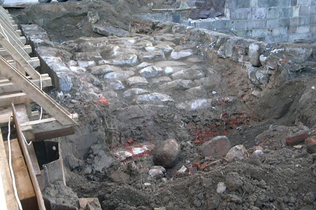 die an der Brücke stand, sind nur noch Bogensubstruktionen erhalten, das Gebäude fiel